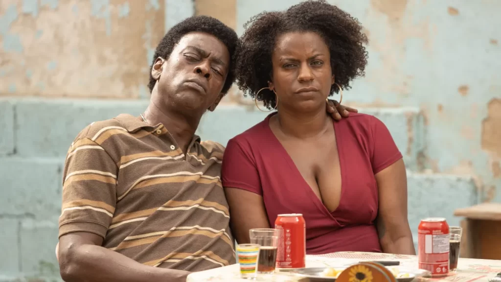 Durante a maior parte do filme a ameaça de Leandro não é presencial, e vemos tudo pela ótica de Gal, o que simboliza também esse tipo de relacionamento, que pode deixar marcas muito além daquilo que enxergamos. Quando ele finalmente aparece, na figura imponente de Seu Jorge. e novamente existe uma dúvida em Shirley sobre o que fazer, isso mostra uma humanidade da personagem, mais do que qualquer outra coisa. E isso reforça o motivo de sua decisão final, que é catalisada não por ela, mas por conta de seus filhos.